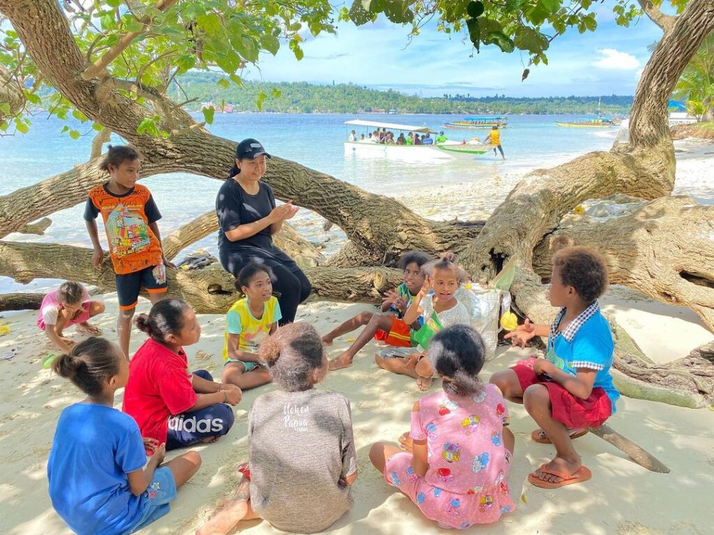 Di Mansinam, Jordy belajar bahwa menyelamatkan pendidikan bukan hanya soal mengeja huruf dan angka – tetapi lebih jauh tentang membantu anak-anak mempertahankan hak dan masa depannya.