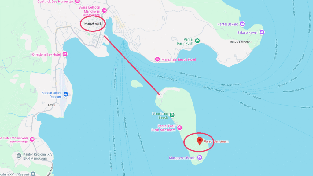 Peta posisi Pulau Mansinam – Dok. Google Maps